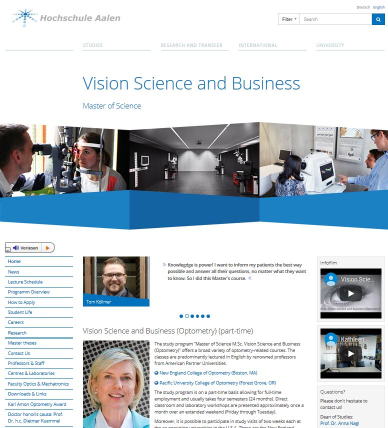 Wenn Du weitere Informationen zum Studiengang M. Sc. Vision Science and Business (Optometry) in Aalen erhalten möchtest, bei uns vorbeischauen willst oder uns einfach eine Nachricht senden magst, bist Du hier richtig.